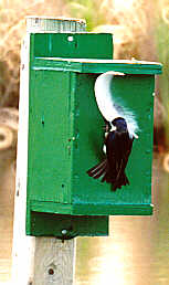 I watched as this swallow tried valiantly to get the feather into the nesting box. She was determined! After making several attempts, she flew to a neighbouring box and tried it too. Finally she gave up. The feather just wasn't going to fit. I sort'a wanted to help her.
